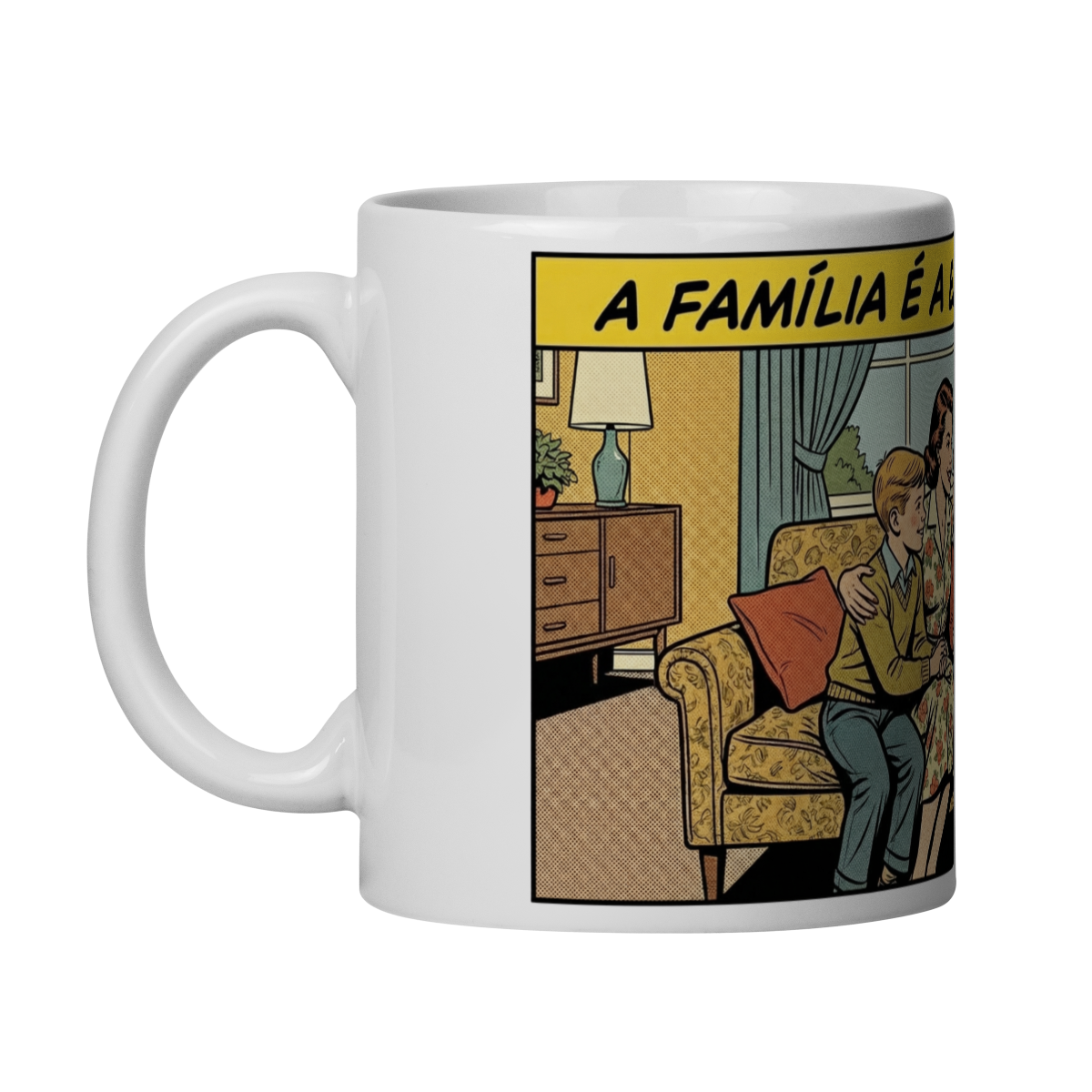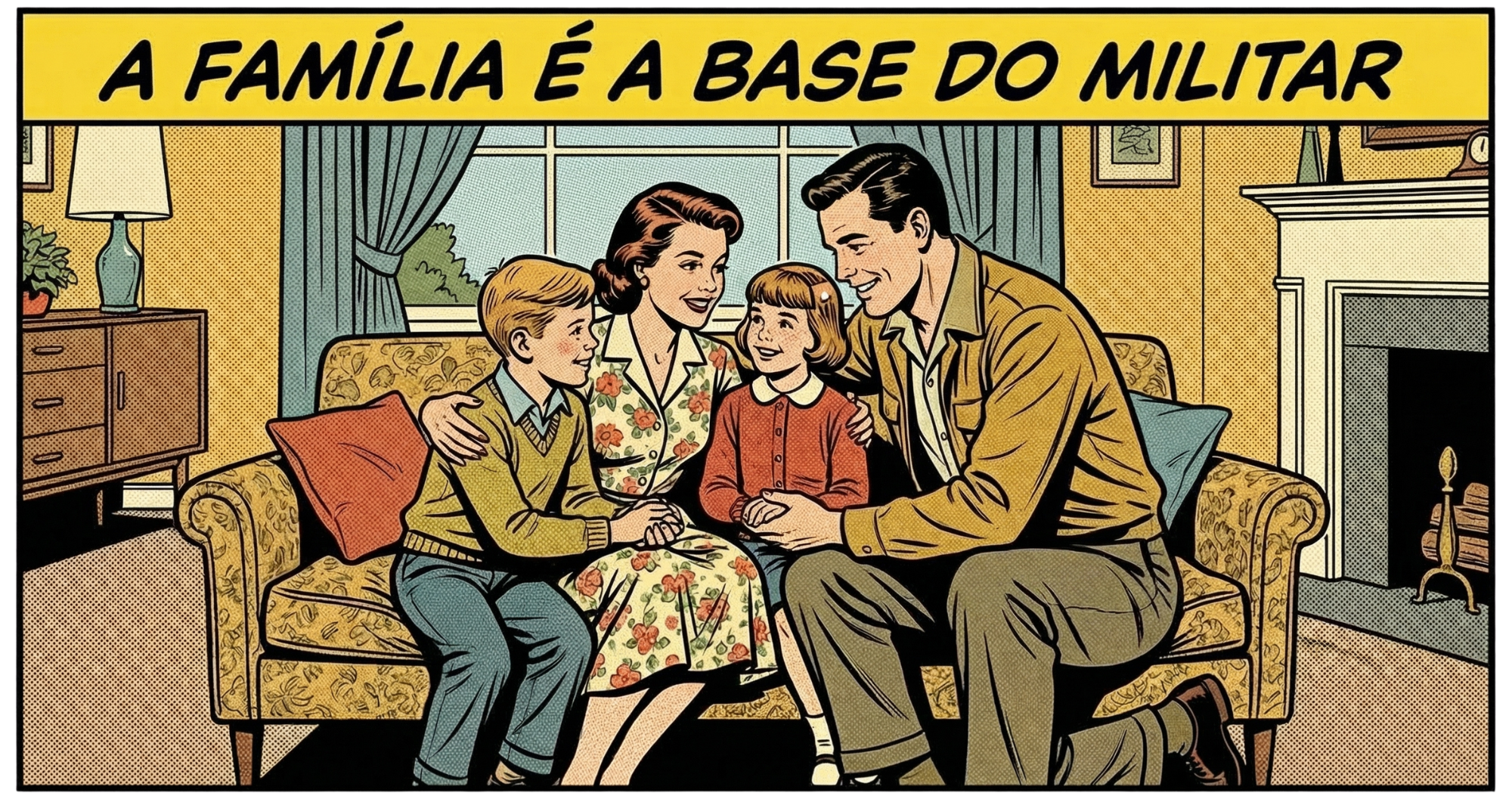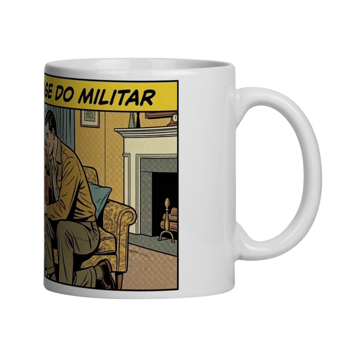 A caneca “A família é a base do militar” homenageia quem sustenta, apoia e fortalece o militar todos os dias: a família. A arte, inspirada no estilo HQ clássico dos anos 50–60, representa união, suporte e o alicerce emocional que permite que cada missão seja cumprida.