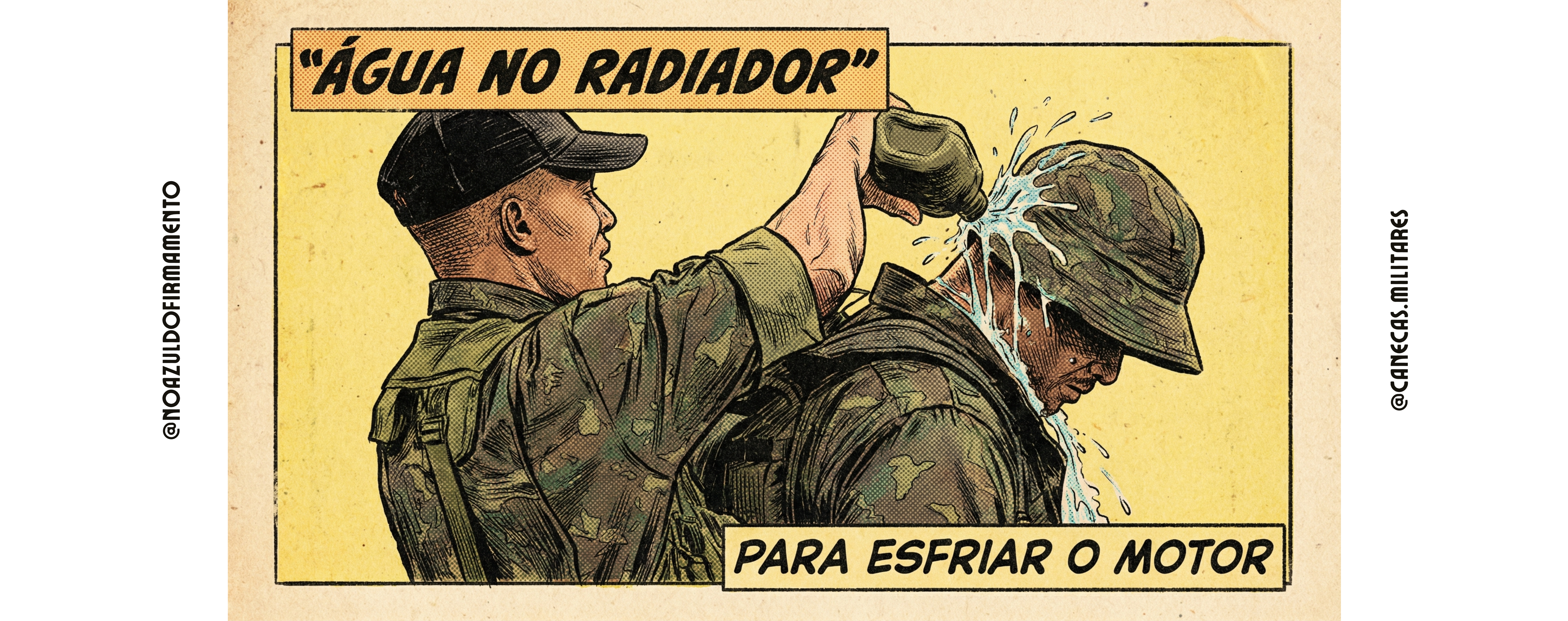 A frase “Água no radiador… para esfriar o motor” carrega aquela ironia típica de quem aprende, na prática, que solução nem sempre é a ideal, mas é a que funciona na hora. É o jeitão militar de resolver problema com o que tem em mãos.