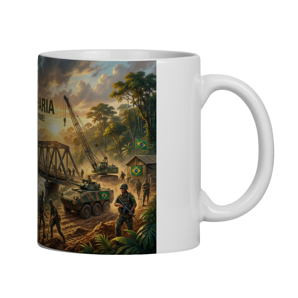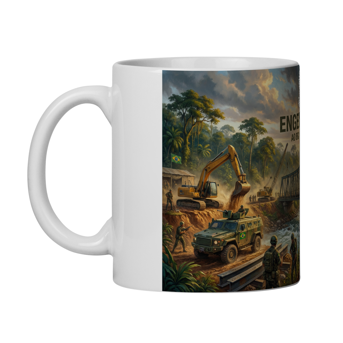 Esta caneca homenageia a Arma de Engenharia, a força que abre caminhos, constrói pontes e garante a mobilidade das tropas em qualquer terreno.