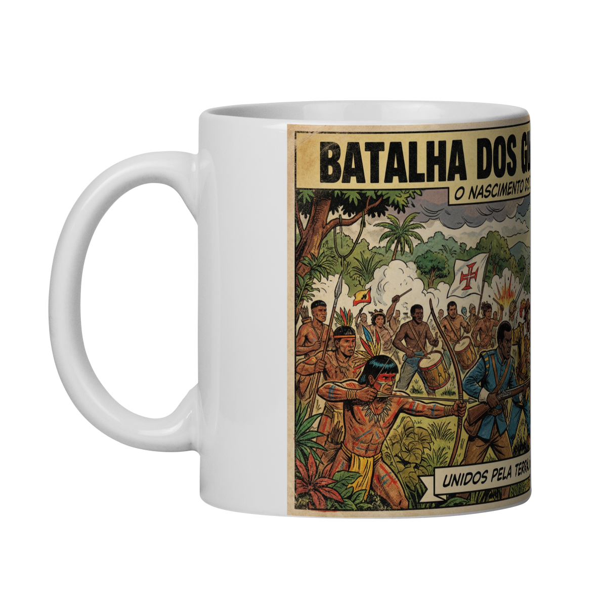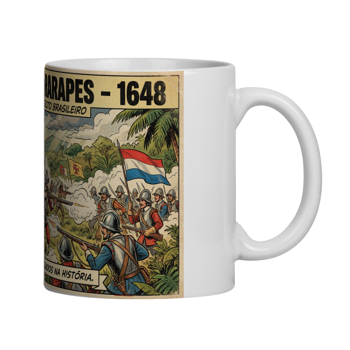 A caneca “Batalha dos Guararapes – 1648” celebra um dos momentos mais importantes da história do Brasil: o nascimento do Exército Brasileiro a partir da união de diferentes povos em defesa da terra.