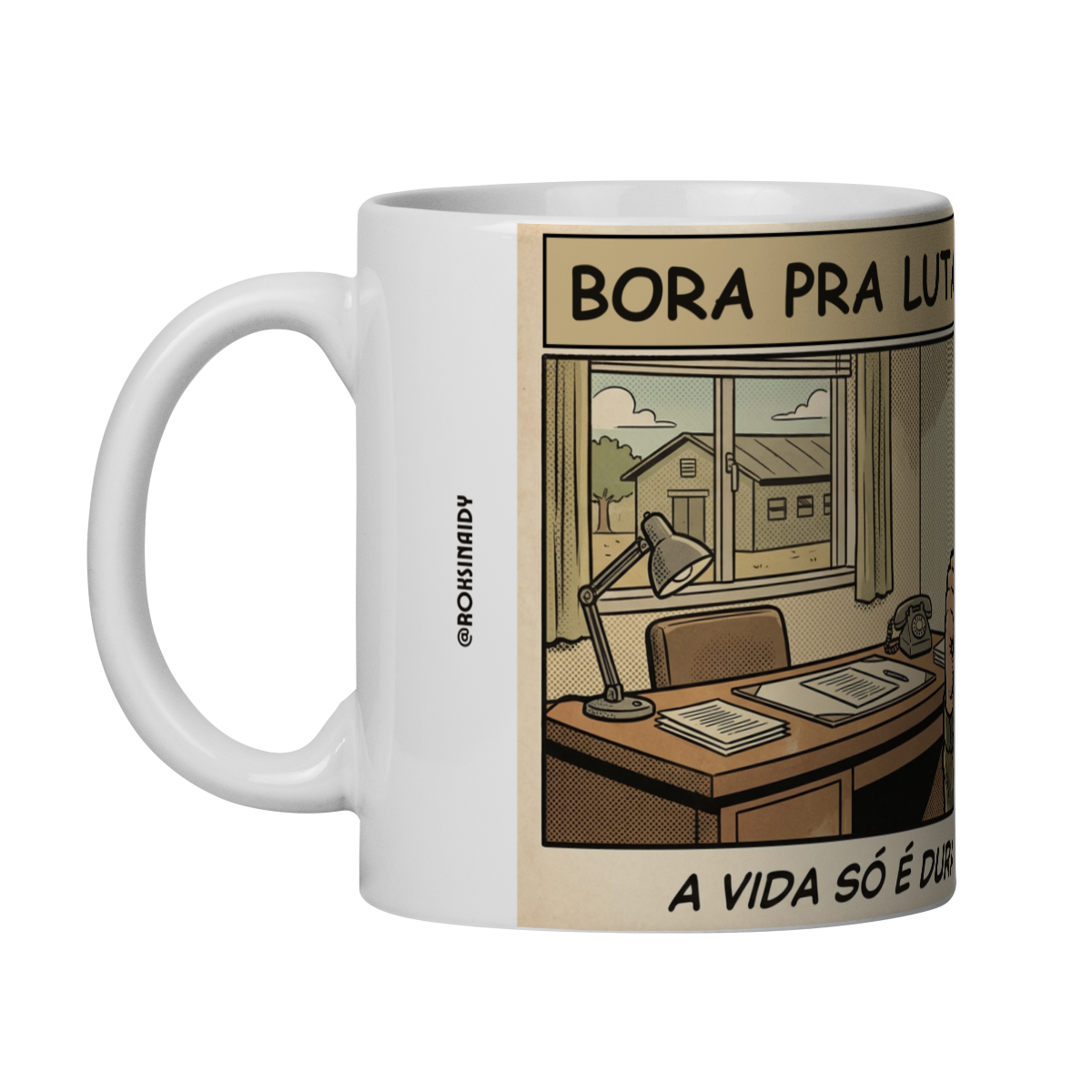 Mais do que uma caneca, um chamado à ação. Com a frase “BORA PRA LUTA!”, a arte representa quem encara a rotina com coragem e transforma pressão em combustível.