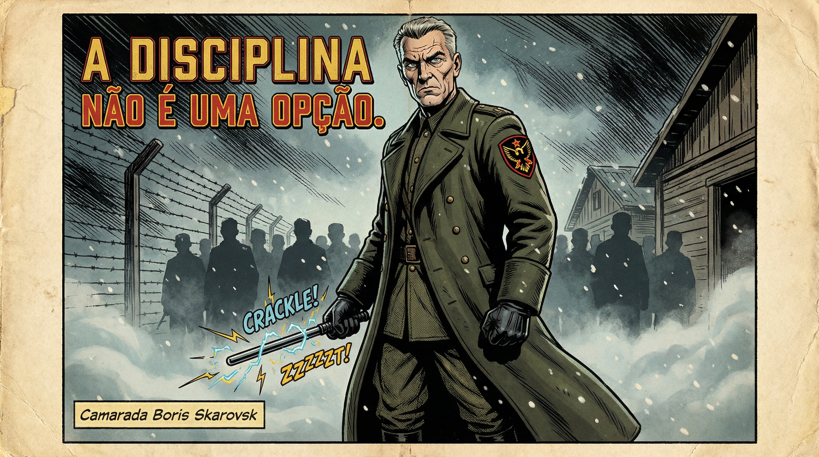 A caneca Camarada Bóris Skarovsk representa o mito do treinamento extremo, da disciplina levada ao limite e da mentalidade inquebrável. Inspirada no imaginário das forças especiais do leste europeu, essa arte em estilo HQ anos 50–60 traz um personagem intimidador, símbolo da resistência física e psicológica.
