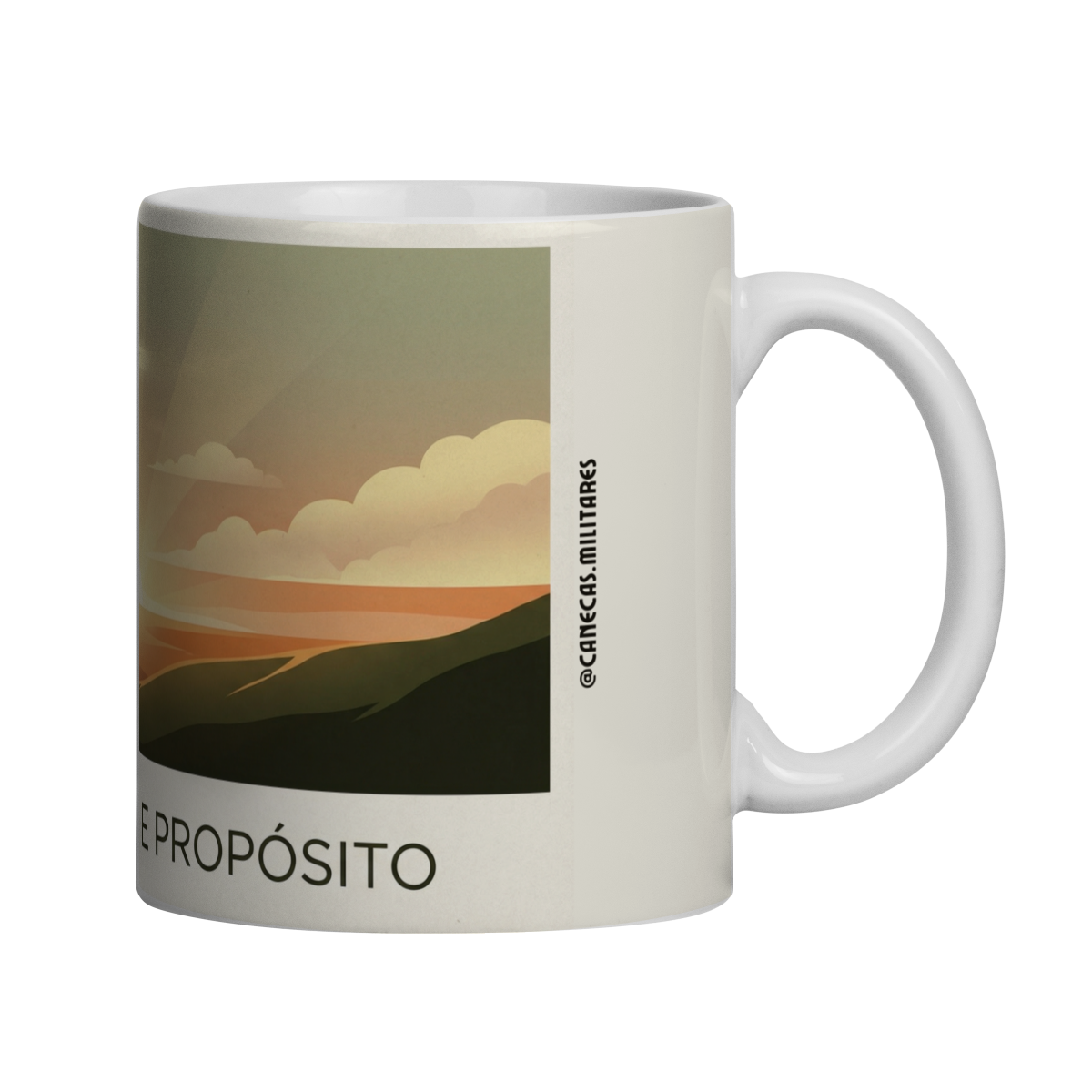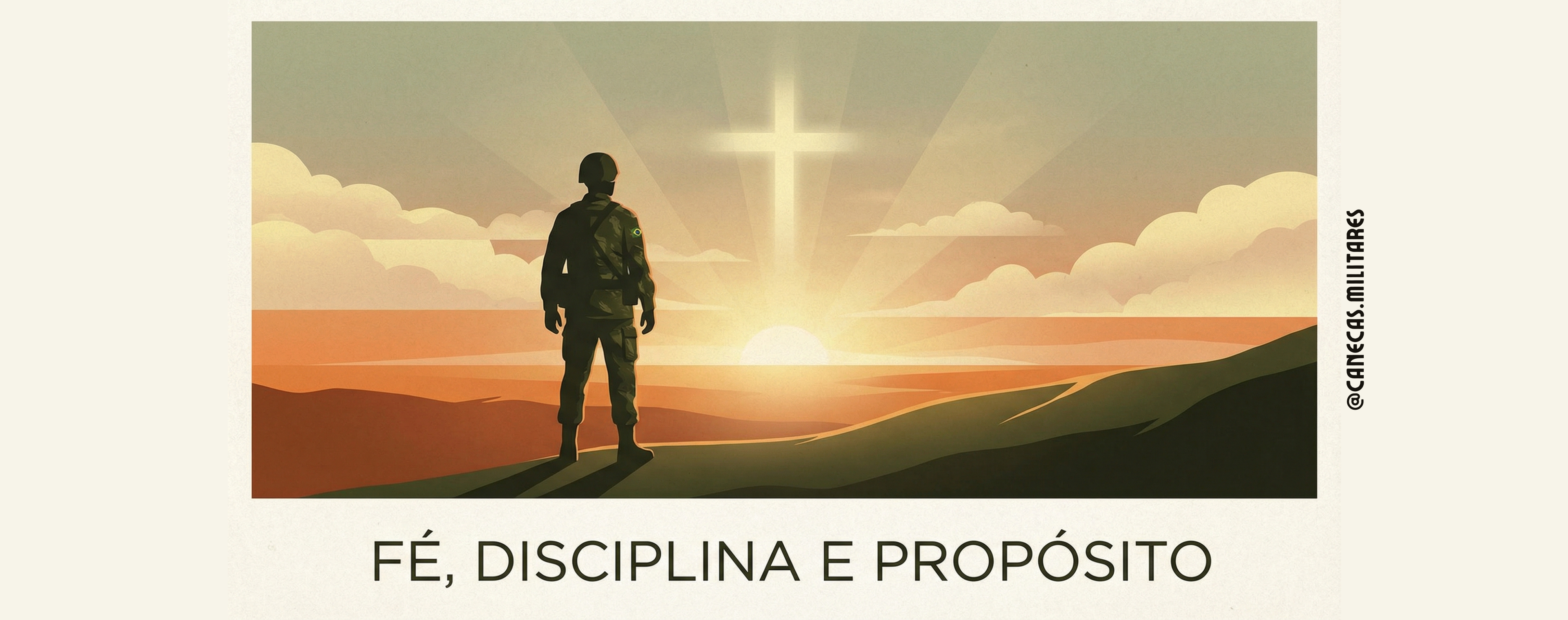 Mais do que uma caneca, um lembrete diário de quem você escolheu ser. Esta arte representa um militar diante do horizonte, guiado pela luz e por algo maior que si mesmo, simbolizando fé, direção e propósito.