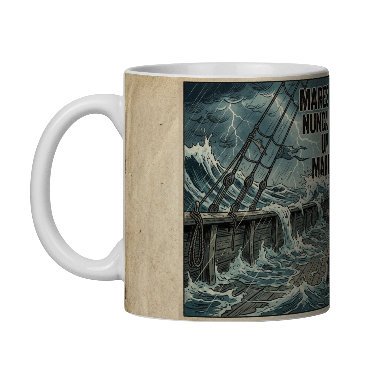 Essa caneca carrega a essência de quem foi forjado na dificuldade. A arte, em estilo HQ vintage, retrata um marinheiro enfrentando uma tempestade brutal em alto-mar, firme ao leme enquanto as ondas avançam e o caos se instala ao redor. Uma cena intensa que simboliza resistência, experiência e domínio em meio à adversidade.