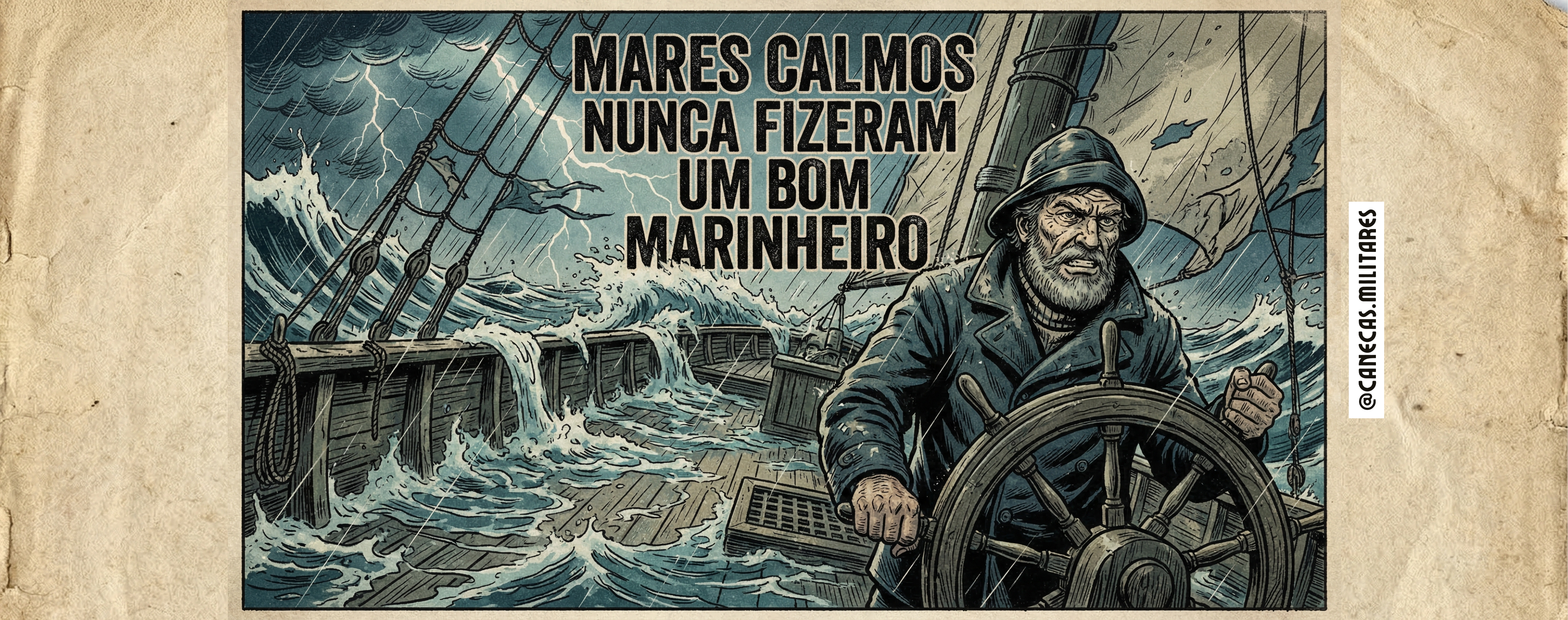A frase “MARES CALMOS NUNCA FIZERAM UM BOM MARINHEIRO” reforça a mensagem de forma direta: são os momentos difíceis que moldam caráter, habilidade e liderança. Não é sobre conforto — é sobre evolução sob pressão.
