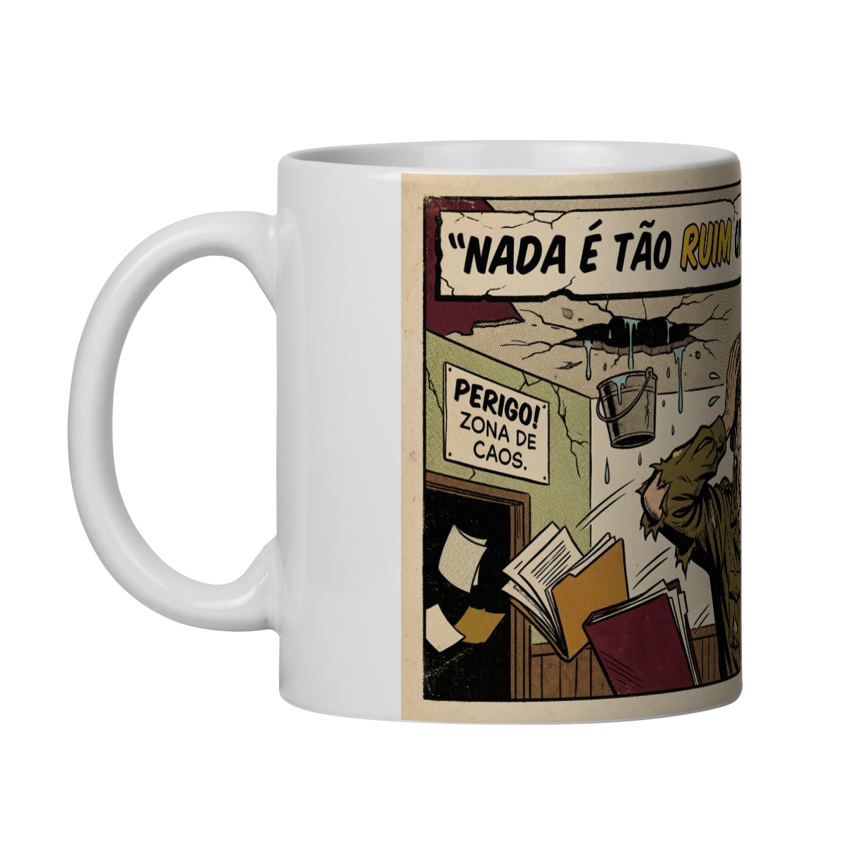 Com arte exclusiva em estilo HQ retrô (anos 50–60), ela transforma uma verdade inconveniente em bom humor cotidiano - perfeita para a mesa de trabalho, escritório, home office ou para presentear quem sempre diz: “calma, ainda pode piorar”.