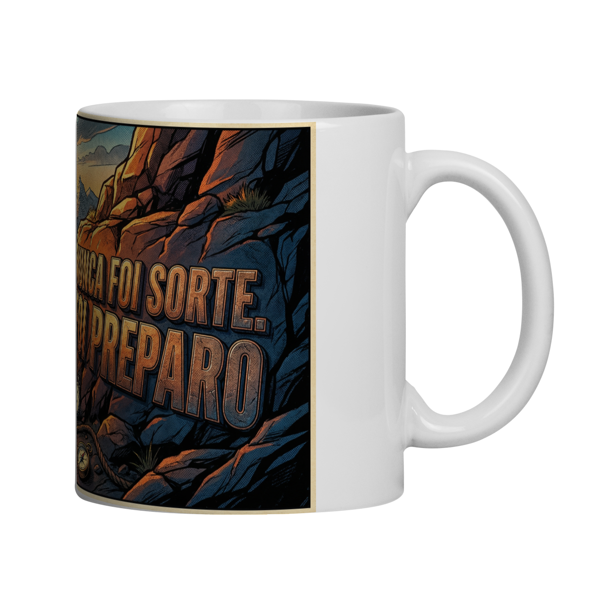 A caneca “Nunca Foi Sorte. Foi Preparo” representa a jornada de quem escolheu a disciplina, o esforço diário e a constância como caminho para o sucesso.