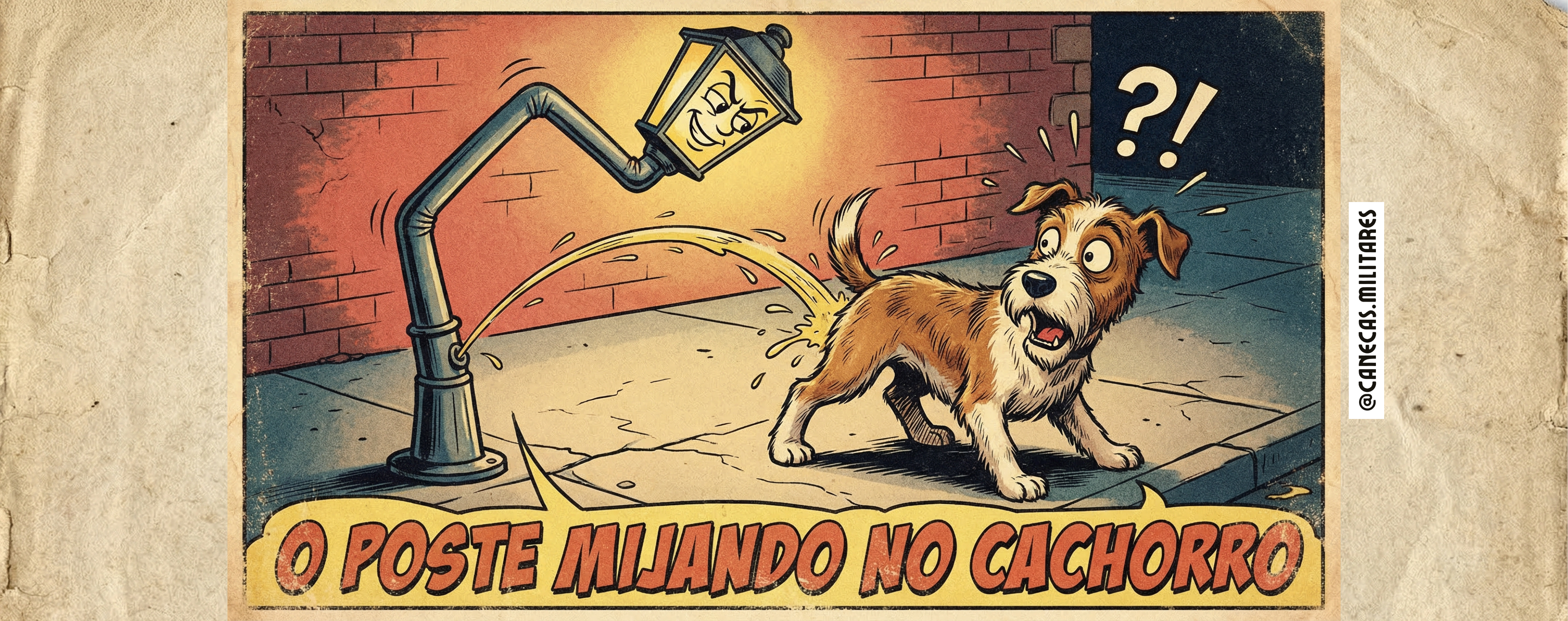A frase “O POSTE MIJANDO NO CACHORRO” vira aqui uma metáfora direta para o absurdo de um subordinado querendo dar ordem em um superior. É o tipo de situação que mistura surpresa, indignação e, depois, boas histórias para contar - porque no fundo, quem vive a caserna sabe que isso não passa batido.