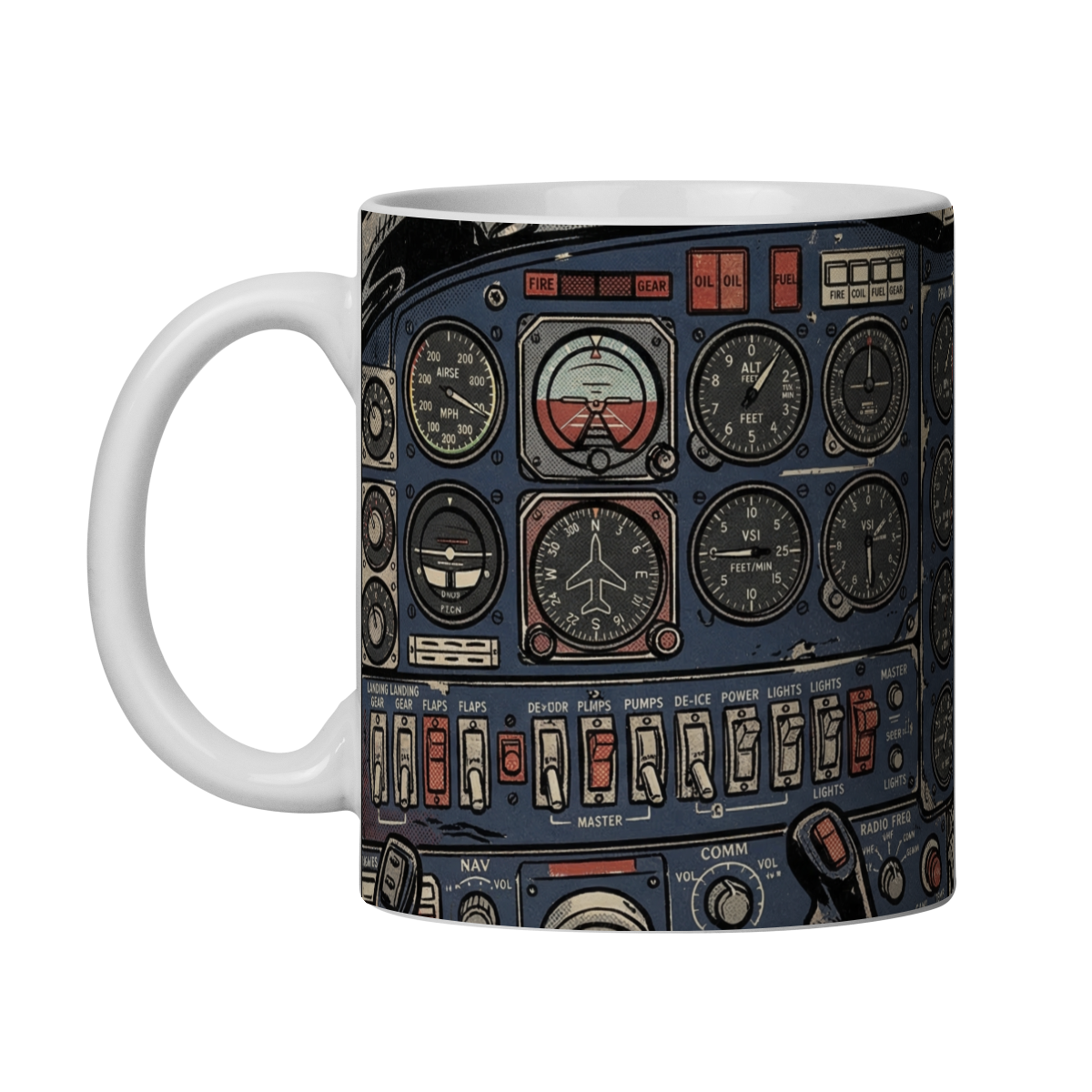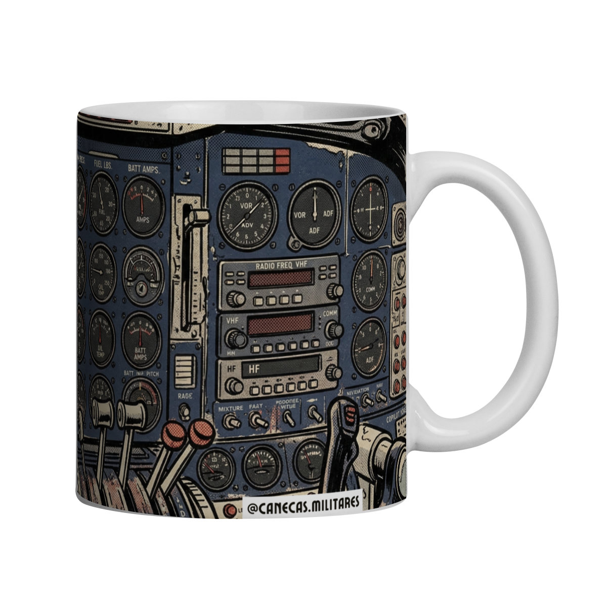 Essa caneca traz toda a autenticidade dos cockpits clássicos em uma arte rica em detalhes e com estética inspirada nas HQs das décadas de 50 e 60. Um verdadeiro mergulho no universo da aviação raiz.