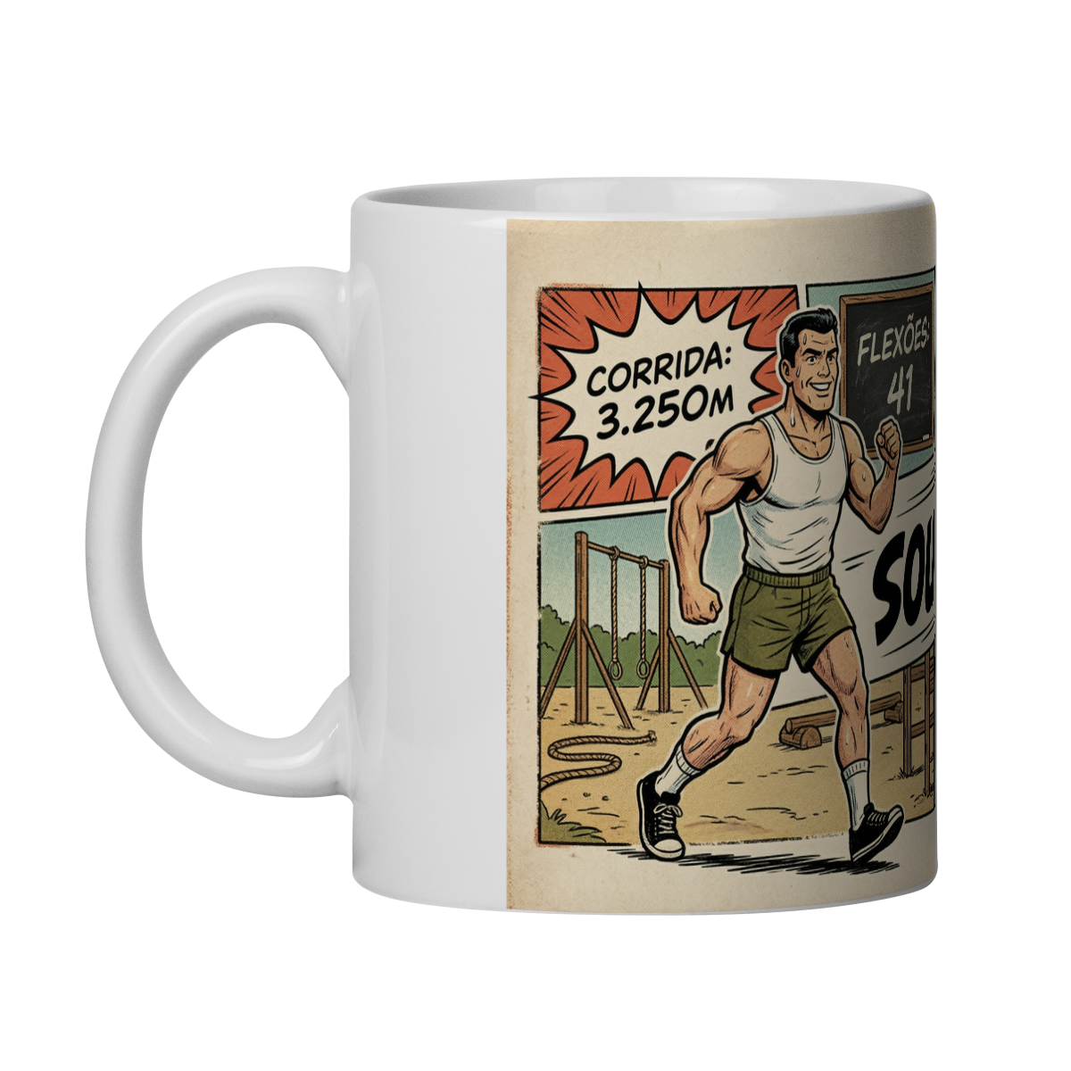Essa caneca é para quem encara o teste físico de frente — com suor, disciplina e uma boa dose de bom humor.