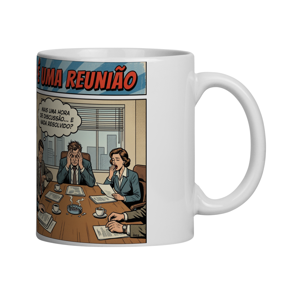 Nem toda conversa precisa virar uma reunião interminável! Esta caneca é para quem valoriza objetividade, clareza e ação.