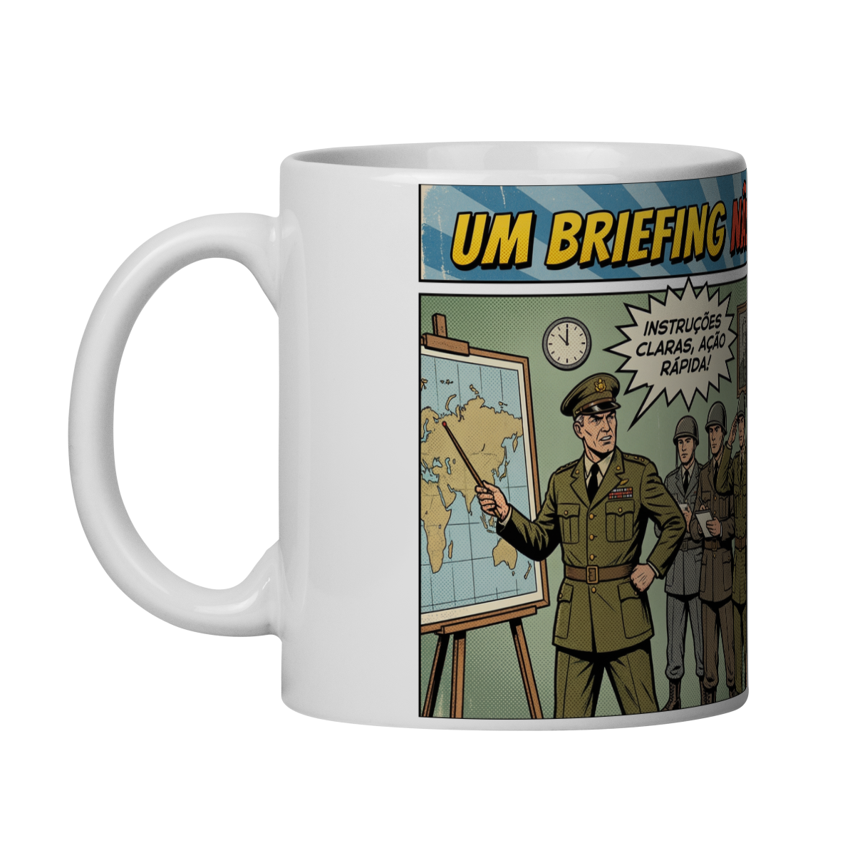 Inspirada na mentalidade militar aplicada ao mundo civil, a caneca “BRIEFING NÃO É REUNIÃO” é um lembrete diário - no escritório, no home office ou na mesa de reunião - de que tempo é recurso estratégico.