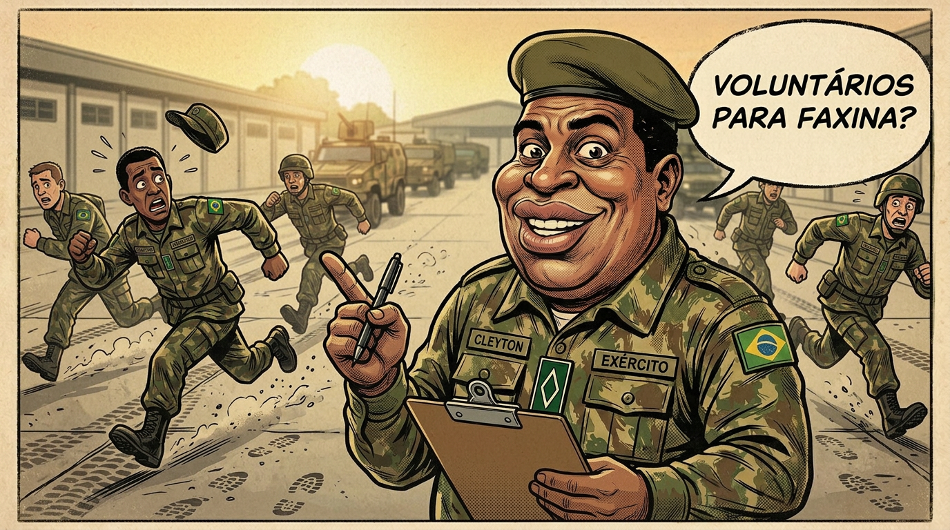 “Voluntários para faxina?” - a frase mais perigosa já ouvida dentro de um quartel. Quem é experiente nem olha pra trás… quem vacila, já era.
